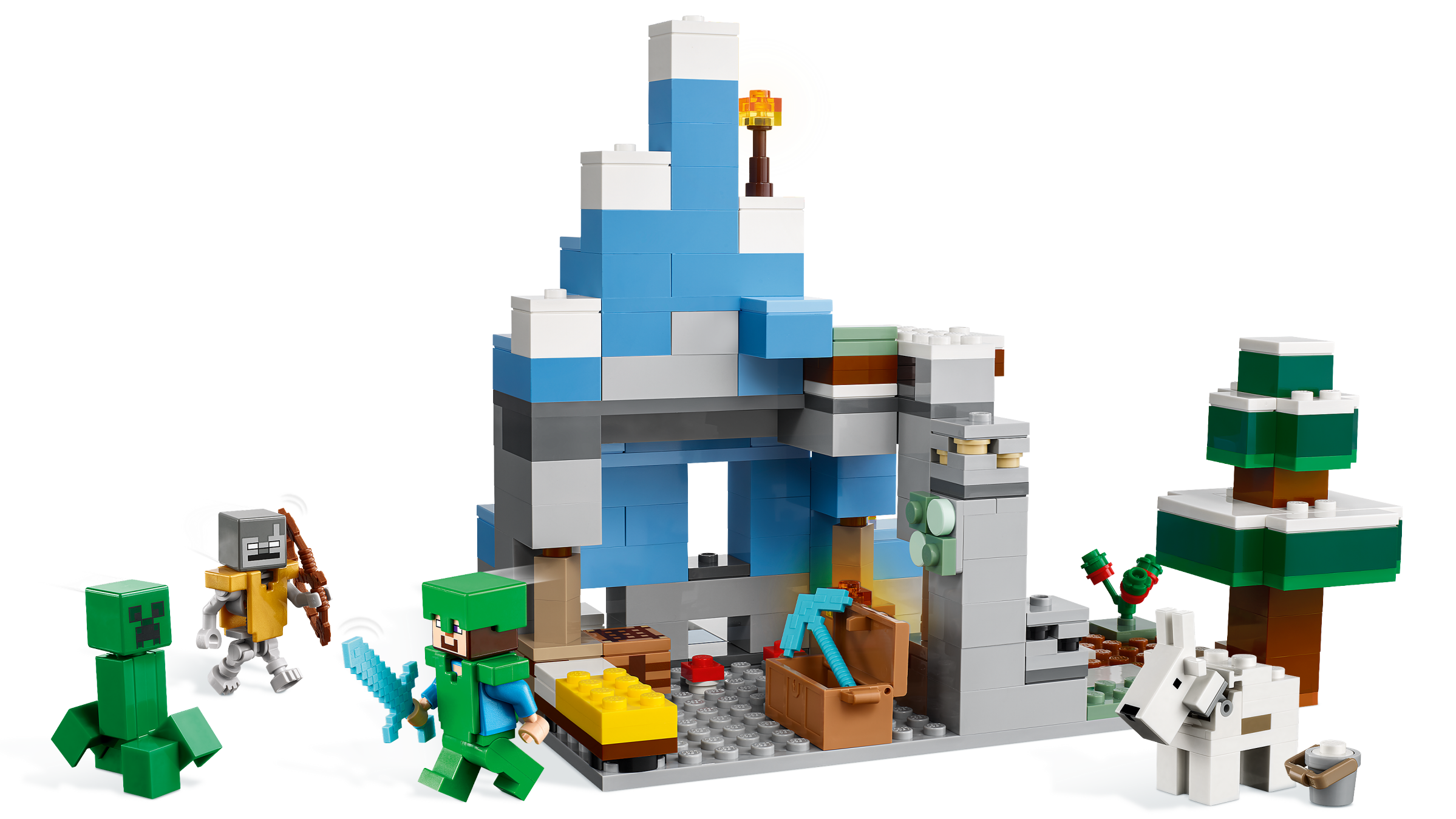LEGO® Minecraft® The Frozen Peaks (21243) is filled with hands-on features and functions to give players aged 8 and up mountains of action-packed Minecraft fun.
