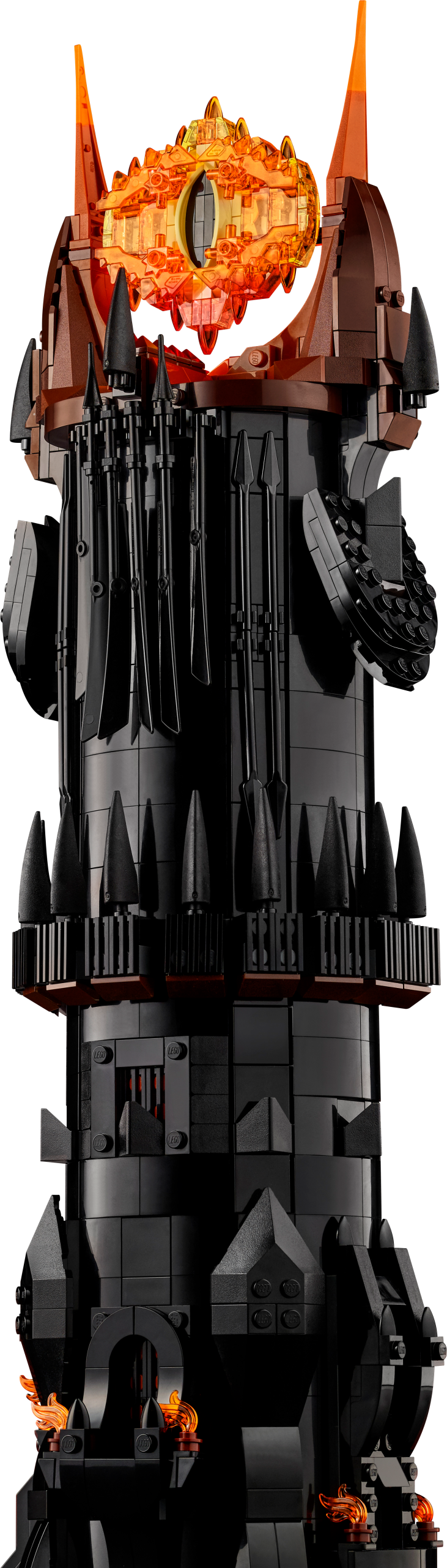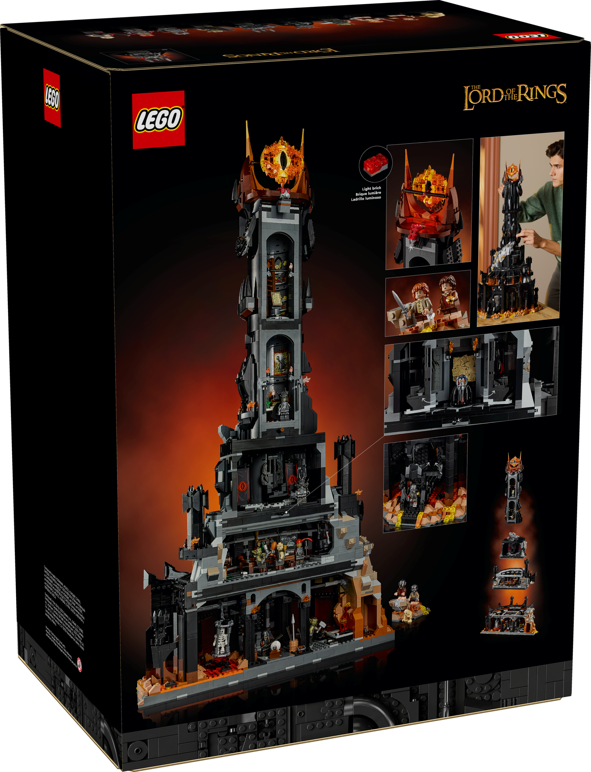 Journey to Middle-earth™ with the LEGO® Icons The Lord of the Rings: Barad-dûr™ model. This impressive film memorabilia set is bursting with features that fans will adore and depicts the ominous fortress with its soaring tower elevating the Eye of Sauron™ high above Middle-earth™. The set also comes with 10 minifigures, including Sauron™, Mouth of Sauron™, Gothmog, Orc™, Frodo, Sam and Gollum™.