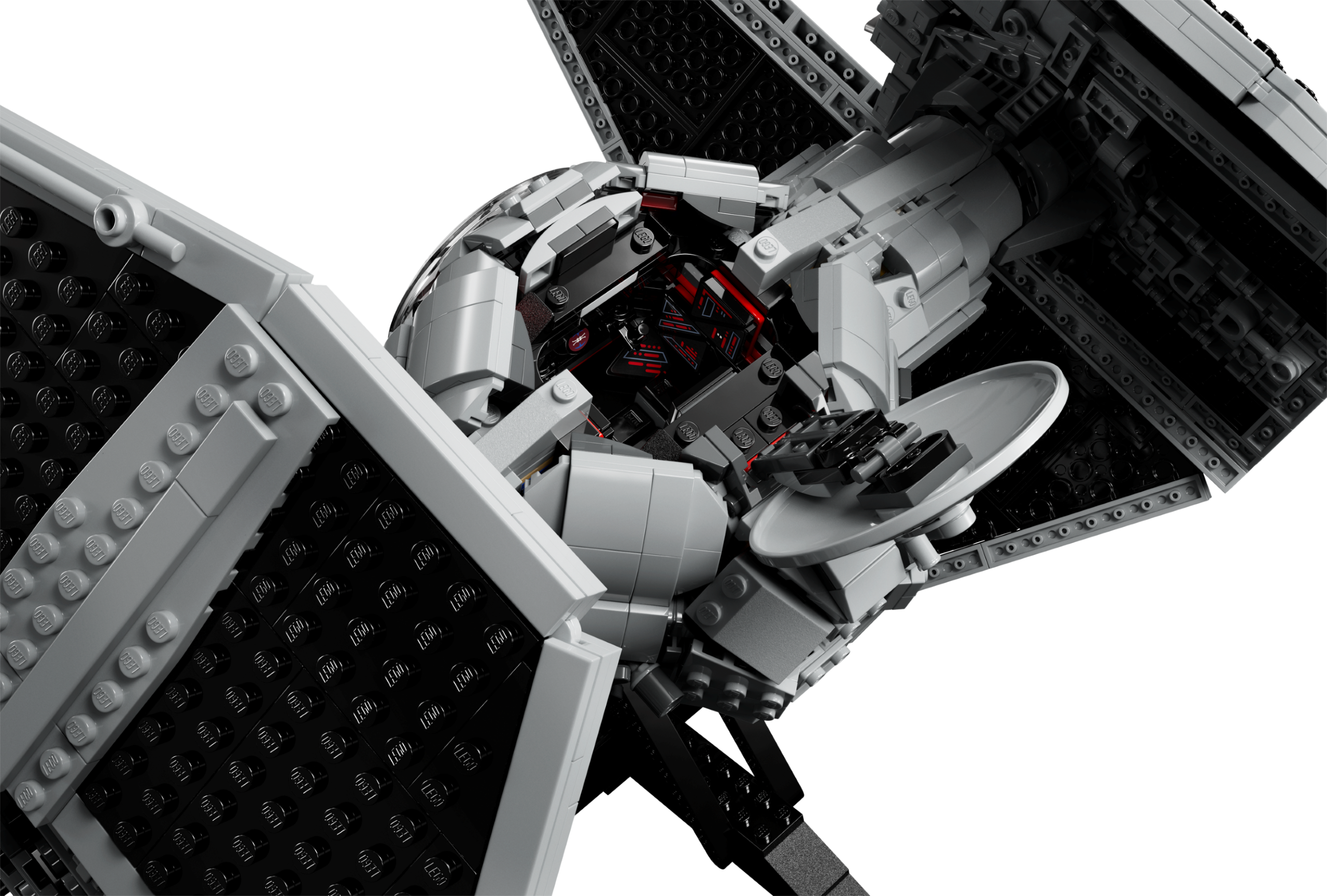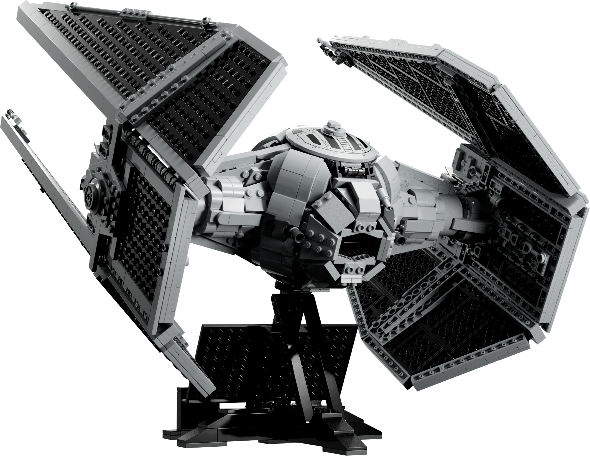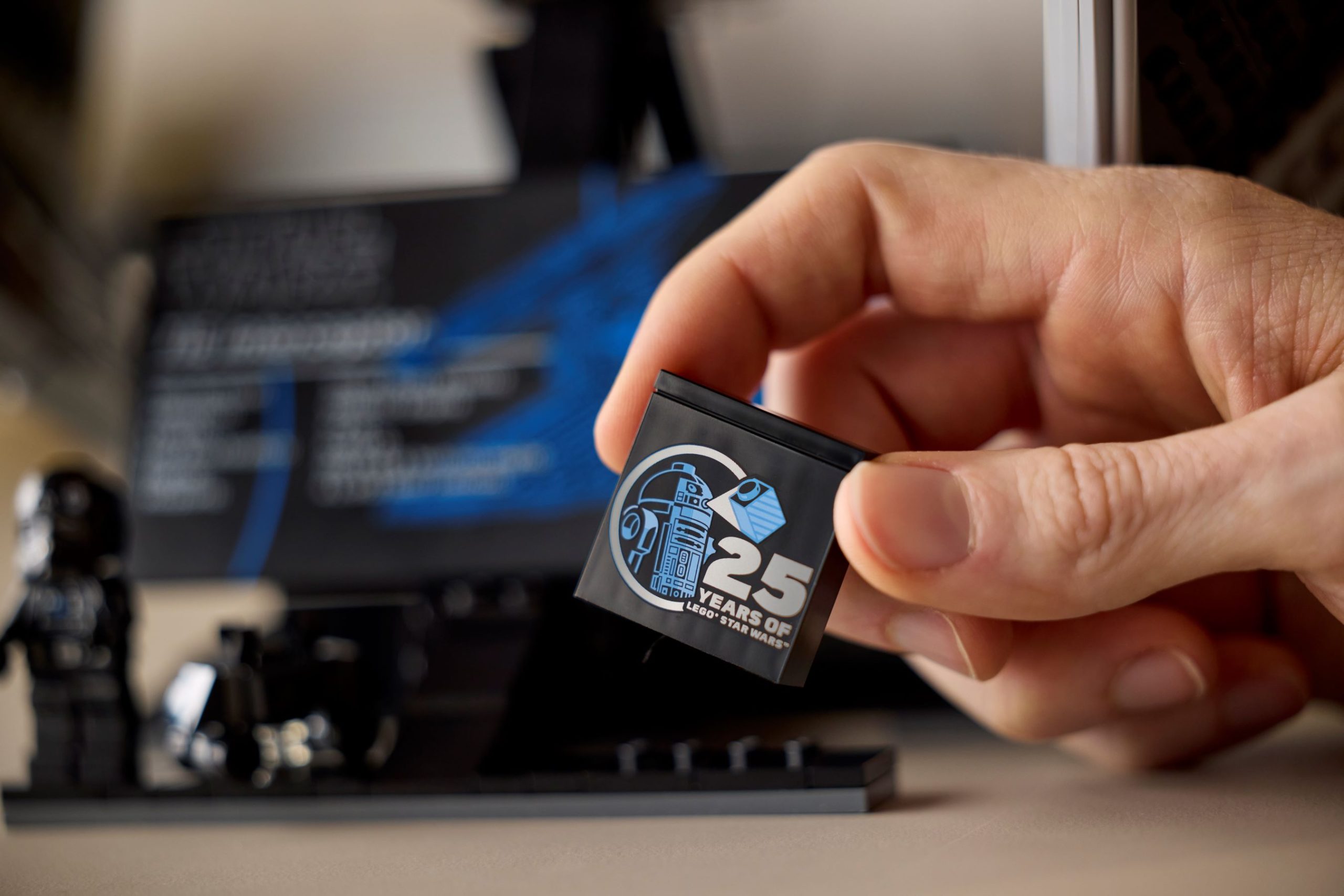 This collectible brick-built vehicle measures over 40 cm (16 in.) long and has a display stand with an information plaque, a LEGO Star Wars 25th anniversary brick and space for the included TIE Pilot LEGO minifigure and LEGO mouse droid figure.