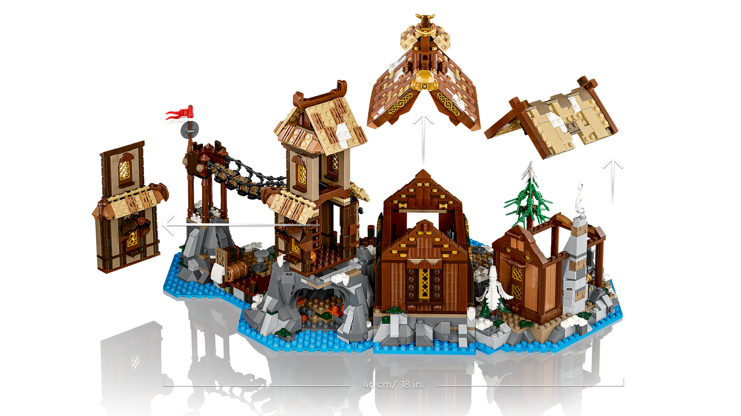 Discover delightful features such as the blacksmith’s forge with a flame-billowing function, shields printed with Odin’s 2 ravens and 2 wolves, the chieftain’s throne, a bridge to the watchtower and a cave for mineral mining. Fans of Norse mythology will enjoy the shields printed with the Viking god Odin’s 2 ravens and 2 wolves. And look out for brick-built references to classic LEGO Vikings sets. There are instructions in the box and on the LEGO Builder app to guide you through every step of the mindful creative experience.