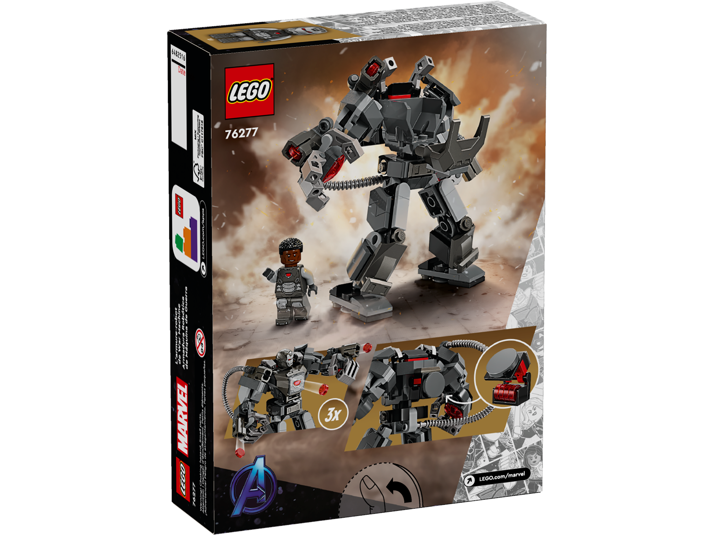 The mech’s chest opens to reveal a cockpit for the War Machine minifigure pilot. There are 3 stud shooters – 1 on the mech’s shoulder and 2 on its arms – and a storage box on its back for extra ammunition. This posable Marvel figure has jointed arms, legs and hands so fans of War Machine and mech warriors can enjoy endless hands-on battle action. Kids can expand the play possibilities even further by combining this buildable toy with other LEGO Marvel mechs in the range (sold separately). For added digital fun, builders can zoom in, rotate models in 3D and track their progress using the fun, intuitive LEGO Builder app.