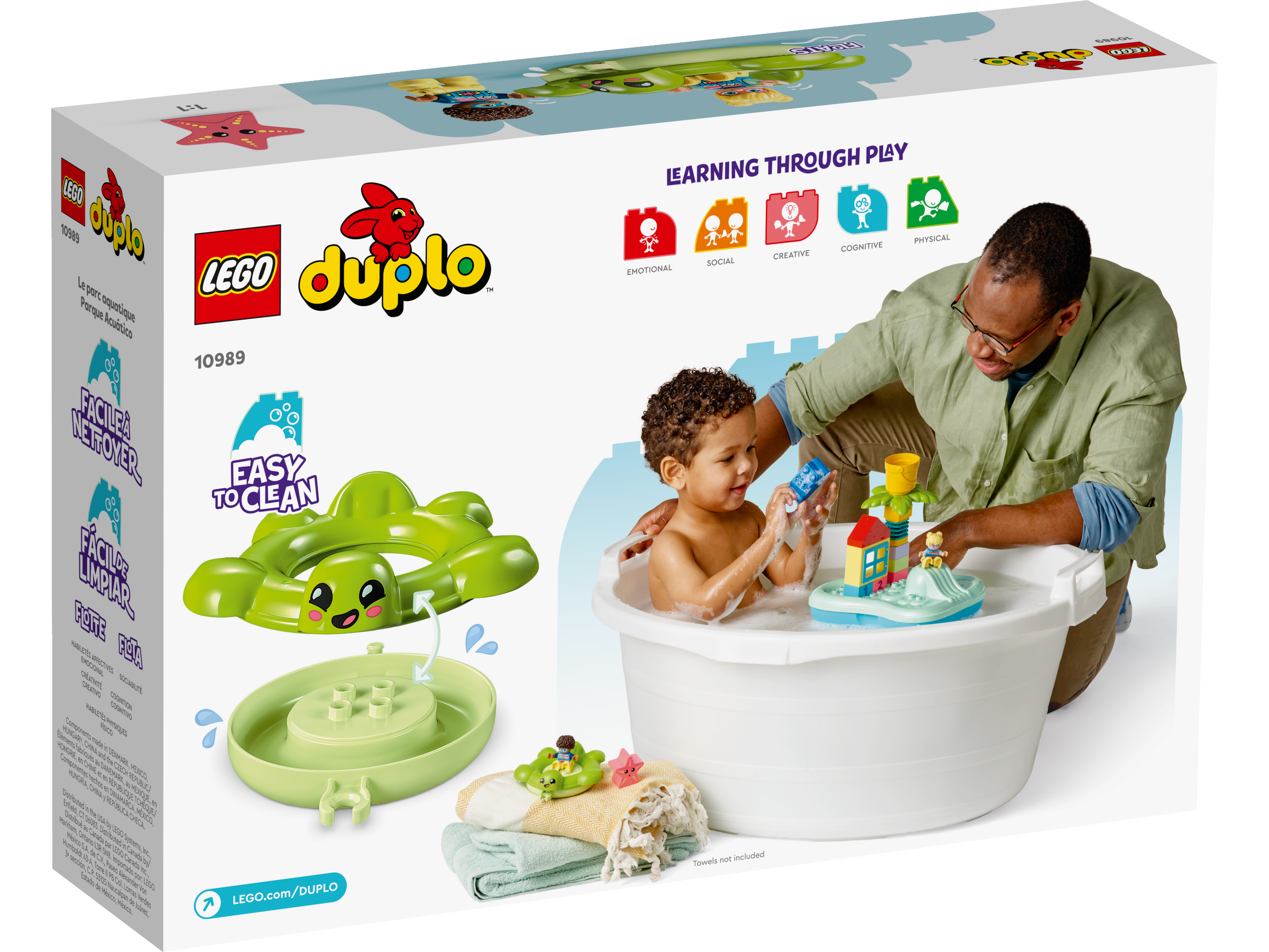 LEGO DUPLO bath learning toys are designed to let grown-ups share in kids’ joyful journey of exploration. When bath time’s over, this floating ring opens so adults can dry it up easily to ensure a hygienically clean bath toy.