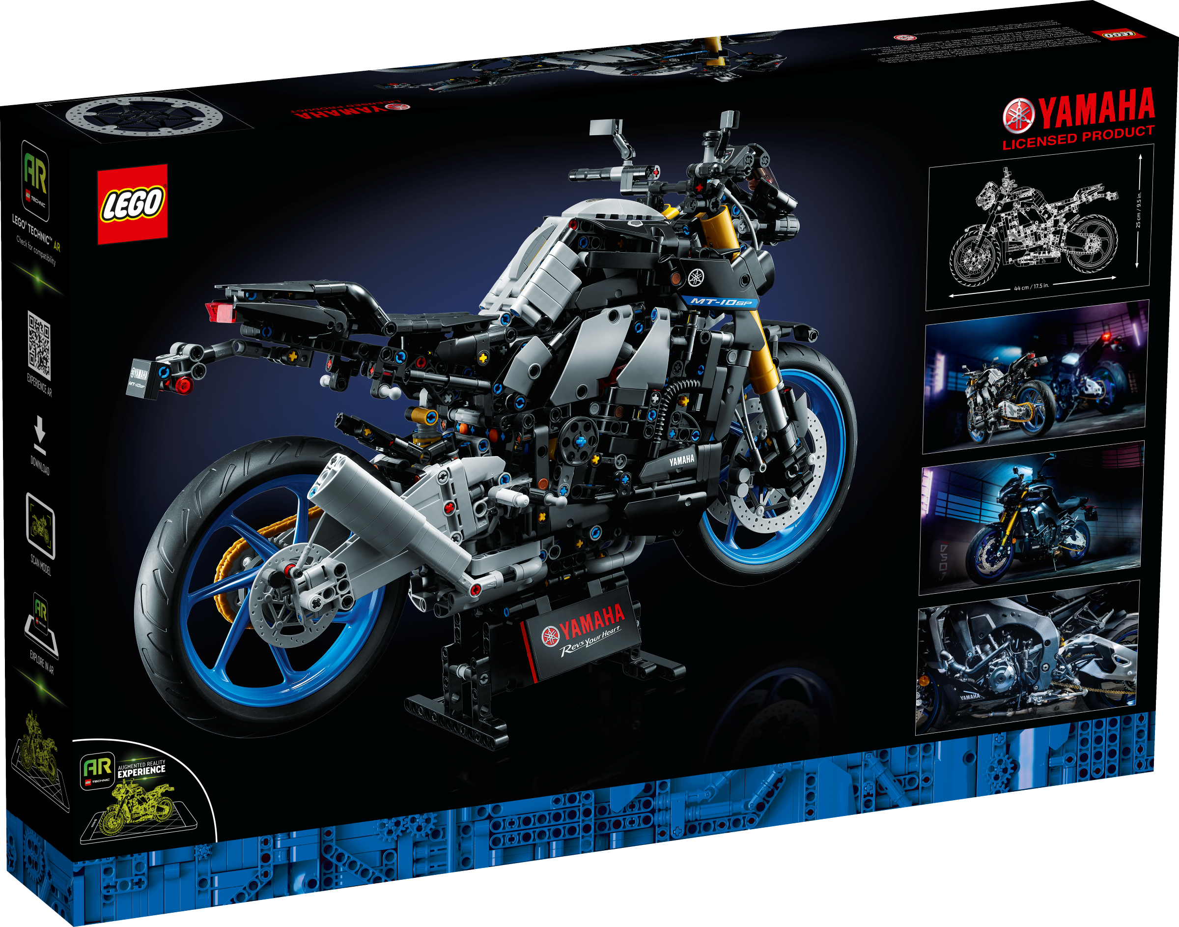 Here’s a project to thrill adult motorcycle fans. This LEGO® Technic Yamaha MT-10 SP (42159) model pays tribute to the most powerful Yamaha motorcycle in the ‘hyper naked’ category. The stripped-back styling highlights the torquey 4-cylinder engine. Explore the LEGO AR app to see the model come to life.