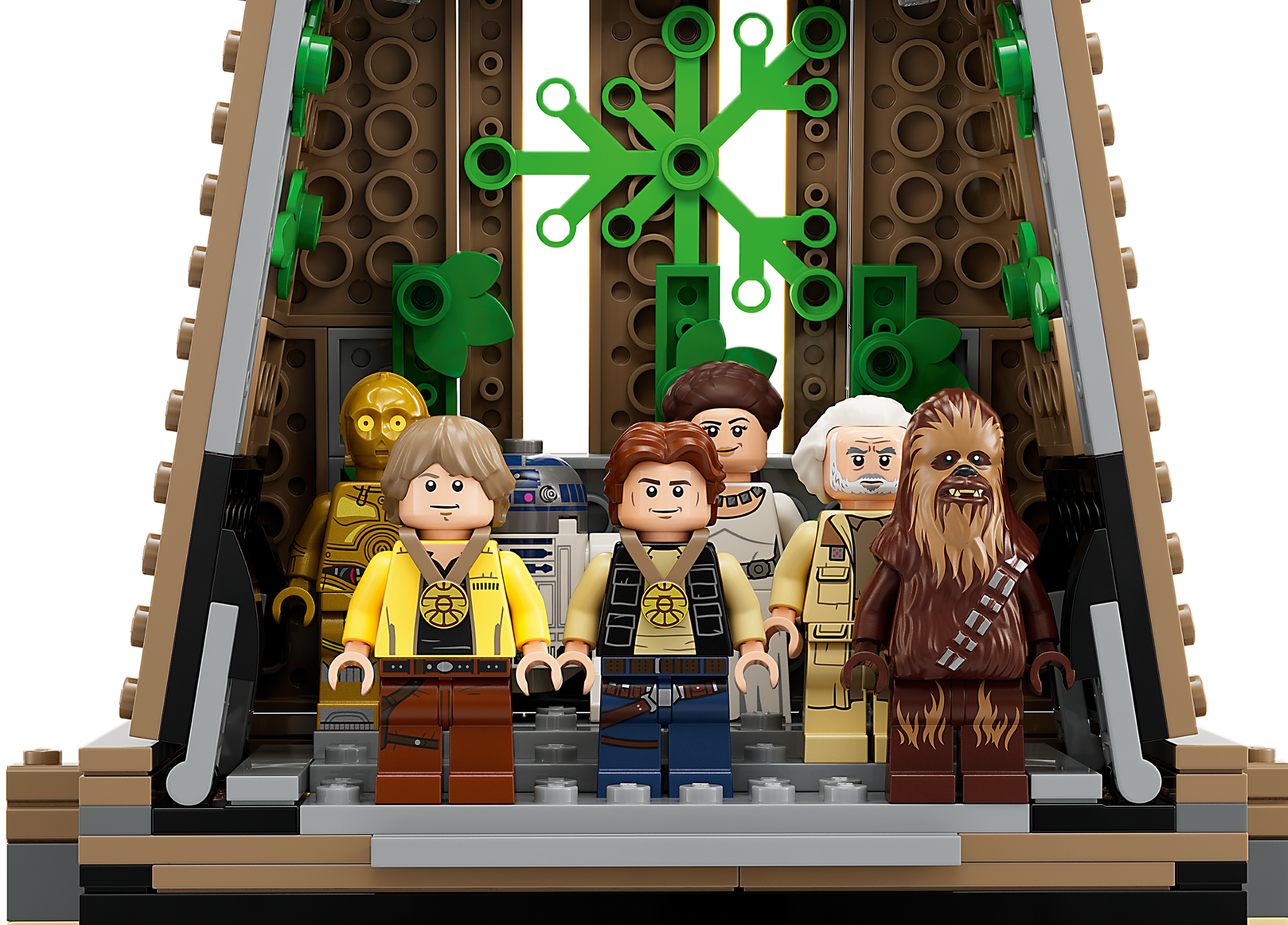 Relive memorable Star Wars: A New Hope moments with this LEGO® brick-built Yavin 4 Rebel Base (75365) for ages 8 . It features a detailed command room, pilot briefing room, medal ceremony stage, 2 rotating stud shooters, a buildable tree with an elevating watchtower, a Y-wing with 2 spring-loaded shooters, plus a service cart. Bring classic scenes to life with 12 LEGO Star Wars™ characters, including a new-for-August-2023 Garven Dreis (Red Leader) LEGO minifigure and an R2-BHD LEGO droid figure, plus signature weapons and accessories such as medals to present to Luke Skywalker and Han Solo.